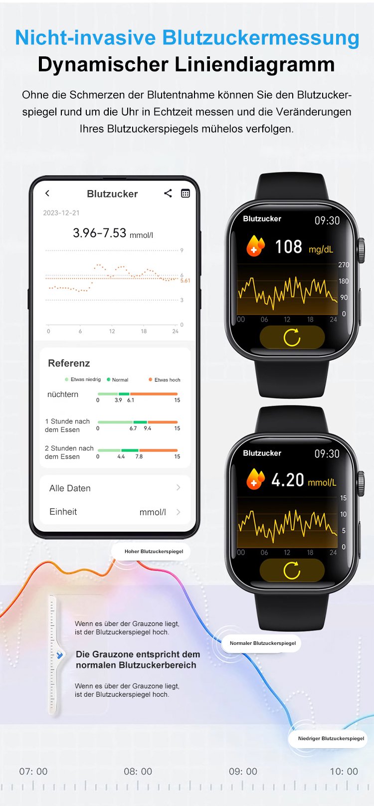 Nicht-invasive, nadelfreie intelligente Glukose-Uhr